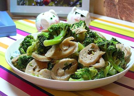 西蘭腰花原料:豬腰4只,西蘭花100克。 調(diào)料:精制油25克,蔥姜、黃酒適量,醬油10克,鹽0.6克,白糖5克,水淀粉適量,麻油少許。 做法:1、豬腰一剖為二,去除腥臊部分,用刀在表面剞十字花刀后改刀成小塊狀,漂洗后再放入清水中,加少許黃酒浸泡一會(huì)兒。 2、取出腰花,在鍋中放入蔥姜、清水燒開,加黃酒,將腰花焯水后取出待用。西蘭花改刀小塊狀,入開水鍋中焯水后取出待用。 2、 加熱炒鍋,入油,下蔥段、姜片,煸出香味后撈出蔥姜,放入腰花,加黃酒、醬油、鹽、白糖煸炒,下西蘭花一同煸炒至熟,再加水淀粉勾芡,淋少許麻油即可。 點(diǎn)評(píng):豬腰富含動(dòng)物蛋白質(zhì)、鐵、鋅,西蘭花中的維生素C豐富,有利于鐵的吸收。 |