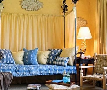 : 當(dāng)那些滄桑歲月閃現(xiàn)在陽光下,明媚的色點(diǎn)亮了它們的臉。就是這樣帶著暖意的黃讓你的房間變得充滿活力,搭配藍(lán)色的格紋布藝床品,留下亮眼風(fēng)貌。