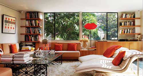 這所房子位于好萊塢城西邊,距離大名鼎鼎的日落臺大街僅200米,周圍被經(jīng)常有明星出入的五星級酒店環(huán)繞,就連鄰居的名字也如雷貫耳:卡梅隆·迪亞茲、萊昂納多·迪卡普里奧。房子從外面看非常不起眼,掩映在一片茂密的樹林中,建于上世紀50年代,是那種典型的美式平層建筑。主人夫婦都是法國人,20世紀80年代開始在美國定居,男主人克里斯托夫是攝影導(dǎo)演,作品涉及MV、紀錄片、商業(yè)廣告,女主人希里維是服裝設(shè)計師,兩個同樣從事華麗職業(yè)的人相識于夢幻的好萊塢,并開始了嶄新的生活。也許是看多了電影夢工廠的人工雕飾,抑或是法國人骨子里就崇尚自然和低調(diào),兩個人的新家無論從外表還是內(nèi)部陳設(shè)都給人樸素自然的印象。 |