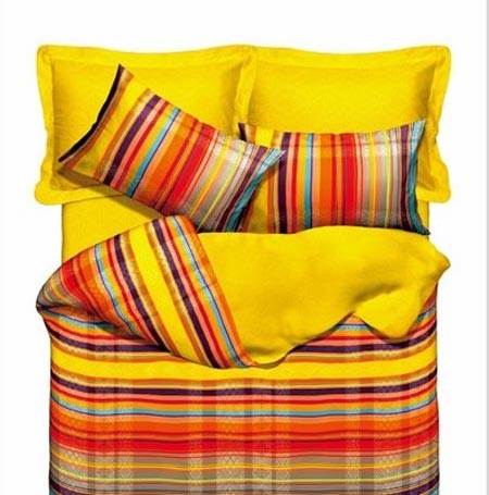 明黃色為主的條紋床品