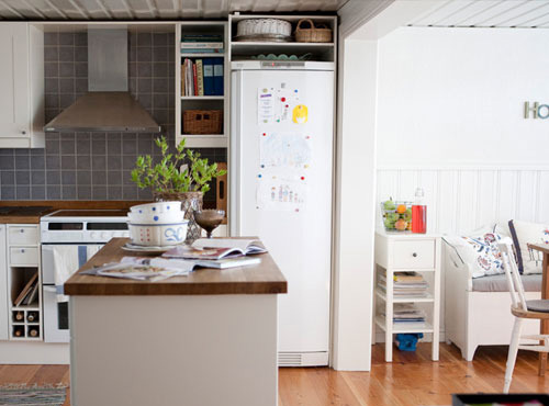 越來越多的家庭開始打通廚房隔斷,將其和起居室融為一體。開放型廚房與起居室的過渡地帶,也就成為了設(shè)計(jì)的重點(diǎn)區(qū)域。放置一個(gè)邊柜吧,既滿足了小空間的存儲(chǔ)需求,又對(duì)大空間進(jìn)行了適當(dāng)?shù)膮^(qū)間劃分。