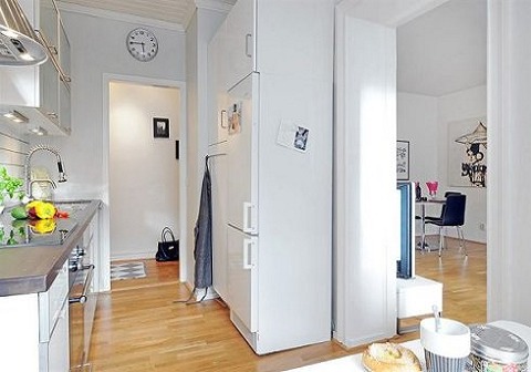 進(jìn)門右手側(cè)即是廚房。整體的白,很干凈,廚房其實(shí)不多用,嘿嘿,不怕臟的!