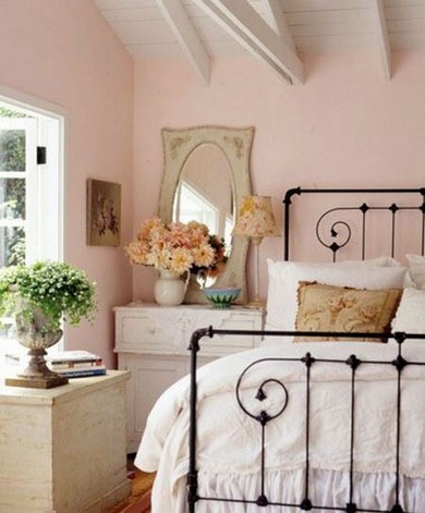 不變的鐵藝床架,永恒的花朵裝飾,然而細(xì)節(jié)處的變化卻演繹出別樣的田園風(fēng)情。色彩濃郁的地毯,黑色的支架,未經(jīng)修飾的天花板,這返璞歸真的跡象,漸漸遠(yuǎn)離了豆蔻年華的稚嫩,更多的是對(duì)于生命的感恩。