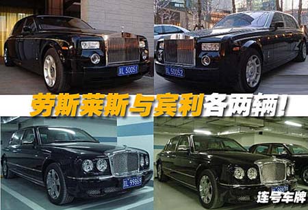 除此之外,黃光裕還擁有兩輛黑色的勞斯萊斯-幻影Phantom,兩輛黑色的賓利-雅致Arnage并且車牌的尾數(shù)都是連著的。除去其它車型不說,就這四輛車的價值就已經超過了2000萬元人民幣了。