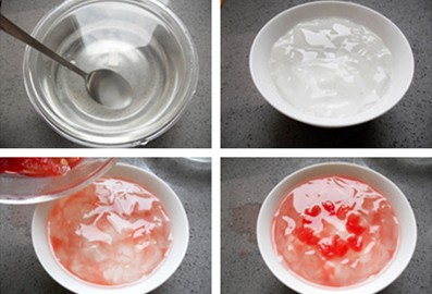 冰粉粉,大家都吃過嗎?我想,家在川西一帶的同學(xué)一定不會陌生吧。傳說中,在成都的街頭,賣冰粉粉的小攤子尤其多,特別是夏天,冰粉粉是非常應(yīng)季的消暑小吃。 據(jù)說,傳統(tǒng)的冰粉是用一種象小核桃一樣的天然果實做成的。用鉗子夾開果實的殼,取出里面比芝麻還小的籽,裝進紗布袋、縫合,再取一盆干凈的涼開水,在水中不停搓揉紗布袋,直到水變?yōu)榧t色,然后常溫放置,就自然會凝成果凍狀了。吃的時候劃成小塊,澆上紅糖水,非常爽口。 北方長大的我,無緣見到這種提取冰粉的小核桃,所以,當(dāng)我在超市里看到有冰粉粉賣的時候,眼睛都亮了 回家就立刻動手做起來,這粉末狀的小東西真是奇妙,凝固之后,就像冰一樣晶瑩剔透,吃起來卻像果凍一樣,QQ的、柔柔的…冰粉粉,不愧于這個名字,真是比冰溫柔,比粉Q韌。 怎么形容好呢?冰粉粉就如同天生麗質(zhì)的美女,可以素面照天,也可以濃妝艷抹。剛做好的冰粉粉,晶瑩剔透,純凈得一塌糊涂,澆一勺紅糖汁,直接就可以吃了。如果覺得不過癮,還可以撒上花生碎、芝麻仁、堅果!S你喜歡。 我的冰粉粉做好的時候,我正在抱著半個西瓜狠狠滴吃,于是隨意用刀把冰粉粉劃成小塊,順手把西瓜汁倒進去…結(jié)果,粉嘟嘟的西瓜汁,順著刀子劃開的路徑迅速蔓延,嫩嫩的粉紅紋路,一瞬間仿佛在空氣中空靈地懸浮著、游離著…美得不像話… 一碗冰粉粉,居然把我看呆了,一時間猶豫著不忍下口…不過嘛,吃掉它,才是對它的最高禮遇,夏日炎炎,午睡之后來一小碗,真是解熱又解渴。