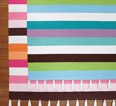 彩色寬直條紋,讓相近的色彩交錯開來,顯得更加清爽時尚。同時用冷色系組成的地毯配合藍(lán)色床品,而暖色系組成的地毯配合粉色床品,可以讓臥室風(fēng)格色彩更加協(xié)調(diào)。 CASE 2:零星糖果色圓點