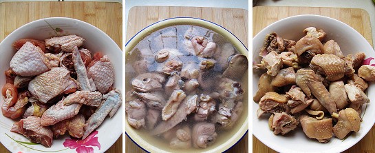 秘制可樂雞(配料豐富,口感多層) 原料:雞、可樂、洋蔥、生姜、青椒、紅辣椒、八角、生抽、鹽等 做法: 1、剁好的雞塊清洗干凈后,下開水里焯一下,去除多余油脂和臟東西;