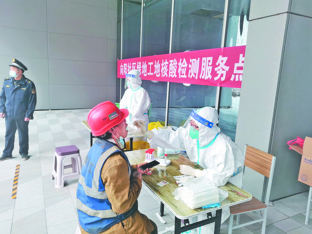 檢查組來到銀苑社區(qū)的“融創(chuàng)江山云起”在建工地門口時,工地值班人員對檢查人員進行測溫亮碼檢查。工作人員仔細查看了工地工人核酸檢測記錄登記清單,現(xiàn)場核對防疫物資儲備及申領(lǐng)臺賬,通過翻閱工地生活場所消殺記錄、查驗消毒液是否完好有效,還隨機抽查了工人企業(yè)碼使用情況。針對部分工人施工作業(yè)過程中未佩戴口罩的問題,檢查組現(xiàn)場指出并要求責(zé)任人員立即整改,同時做好教育管理。 在下車門社區(qū)的稠州中學(xué)擴建工程和華潤置地在建工地,社區(qū)黨員志愿者利用夜查形式,配合“掃街清鋪”“清村掃樓”專項行動,在工人生活宿舍逐人查驗企業(yè)碼使用情況,并督促項目負責(zé)人組織建筑工地現(xiàn)場管理人員、施工人員、后勤保障人員和需進入工地相關(guān)人員定期做好核酸檢測工作。在工地小賣部,黨員志愿者提醒夜班工人購買商品時排隊保持一米以上間距、正確佩戴口罩、不要吸煙。盡管夜色漸深,工人略顯疲憊,但面對溫馨提醒,他們紛紛表示理解,給予高度配合。 “當(dāng)前疫情形勢依然嚴(yán)峻復(fù)雜,建筑工地人員密集且流動性大,疫情防控存在一定難度,稠城中心衛(wèi)生院核酸檢測送上門服務(wù)是為了最大限度將風(fēng)險隱患排查到位。在日常管理上,要進一步發(fā)揮工地微網(wǎng)格效用,完善日常核酸抽檢、場所消殺、佩戴口罩等防疫管理機制。”在綠地朝陽門商業(yè)區(qū)塊在建工地全員核酸檢測現(xiàn)場,向陽社區(qū)負責(zé)人對工地項目負責(zé)人強調(diào)工地防疫注意事項。據(jù)不完全統(tǒng)計,此次核酸檢測共采集樣本400余個,實現(xiàn)綠地朝陽門商業(yè)區(qū)塊在建工地管理人員、建筑工人、后勤人員核酸檢測全覆蓋。 |