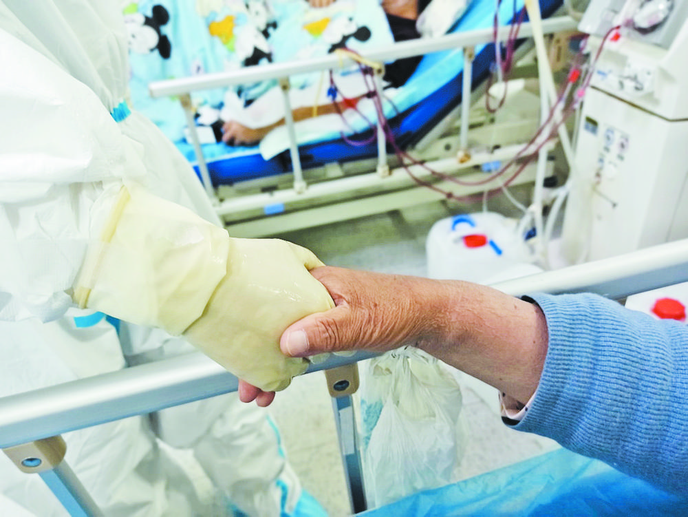 馳援上海的隊(duì)伍中,有一支隊(duì)伍比較特殊,他們是浙江省派出的84名血液透析?谱o(hù)士。目前,他們正在上海三家醫(yī)院的血透中心,全力開(kāi)展血液透析服務(wù)工作,緩解當(dāng)?shù)鼗颊哐鸽y的壓力。 4月11日,在浙江醫(yī)療隊(duì)全盤接管的上海東方醫(yī)院血透室中,一位正在血液透析的年輕患者打趣說(shuō):“謝謝毛毛姐,我以后想去浙江買套房子,去浙江做透析!彼谥械摹懊恪,正是浙大四院血液凈化中心護(hù)士長(zhǎng)毛卓英,她還兼任了此次浙江省援滬血液透析醫(yī)療隊(duì)第一組副組長(zhǎng)。 毛卓英趁著他做治療的間隙,跟他認(rèn)真宣教如何提高血透治療,告訴他如何合理控制水分、如何保持自律等。這位30多歲的年輕患者,把“老師”的話逐字逐句聽(tīng)了進(jìn)去,還反復(fù)說(shuō)著:“謝謝你,你們的操作真的非常規(guī)范,也非常認(rèn)真仔細(xì)! 作為一名血透護(hù)士,同時(shí)是一名有著新冠重癥患者護(hù)理經(jīng)驗(yàn)的護(hù)士長(zhǎng),毛卓英在這里與“戰(zhàn)友”們一起提供了24小時(shí)不間斷的血透服務(wù)。4月2日,接到省衛(wèi)健委的指令后,她第一時(shí)間隨隊(duì)抵達(dá)上海,與第一組共28名醫(yī)護(hù)人員一起,于3日清晨進(jìn)入東方醫(yī)院,全盤接管該院的血透室。 在這里,亟待治療的血透患者超過(guò)400人,許多患者已有1周時(shí)間沒(méi)有接受過(guò)血透治療,患者多、病情復(fù)雜,壓力和挑戰(zhàn)巨大。更為“艱苦”的情況是,血透室里沒(méi)有一個(gè)工作人員,甚至沒(méi)有機(jī)會(huì)能夠交接患者、熟悉流程。 面對(duì)陌生的環(huán)境,毛卓英與隊(duì)員們迎難而上,有條不紊地高效投入“戰(zhàn)斗”。大家迅速熟悉布局、熟悉流程,穿著防護(hù)服度過(guò)了最艱難的第一天。血透機(jī)從早上6點(diǎn)多開(kāi)啟后,一直工作到了第二天凌晨1點(diǎn)多,浙江隊(duì)的醫(yī)護(hù)人員亦是如此。 但回想起第一天的情景,毛卓英仍感覺(jué)心頭很暖!斑沒(méi)有自我介紹,所有的病人都很親切地說(shuō),太好了,你們來(lái)了!”她說(shuō),“我能夠感覺(jué)到這些患者對(duì)我們的期盼,更能感覺(jué)到這段時(shí)間他們的不易。” 有一次,毛卓英正在為一位大伯實(shí)施治療,大伯朝著毛卓英豎起了大拇指。他說(shuō),“我不知道你們要有什么樣的動(dòng)力,抱著多大的決心,才能冒著這么大的危險(xiǎn)來(lái)到上海支援我們。感謝的話我永遠(yuǎn)說(shuō)不完……”大伯的話語(yǔ)、神情,還有目光中閃爍的真誠(chéng),讓毛卓英籠罩在護(hù)目鏡后的眼睛泛起了淚花。 除了血液透析之外,毛卓英護(hù)士長(zhǎng)等一些技術(shù)嫻熟的“精兵”們,更是要進(jìn)入該院區(qū)的隔離病房為特殊患者提供必要的穿刺操作、CRRT治療等。在他們的努力下,兩周以來(lái),浙江醫(yī)療隊(duì)所接管的血透室治療工作都已進(jìn)入正軌,24小時(shí)接連不斷的透析治療,終于讓需要的患者及時(shí)做上透析,獲得了生命質(zhì)量的延續(xù)。 “我覺(jué)得做這些都是值得的!泵坑⒄f(shuō),血液透析患者是一個(gè)特殊的群體,他們的生命和質(zhì)量都需要每周三次的透析治療來(lái)維持。疫情之下,面對(duì)小區(qū)封控、管控、隔離等各種原因,他們更是要為了幾小時(shí)的透析,一天都需要耗在路上和醫(yī)院里,“我們所有的隊(duì)員都希望在能力范圍之內(nèi)盡量能夠幫助到他們! |