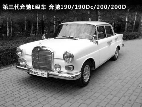 1961年到1965年期間排氣量為 1.9升的第三代E級轎車以190c和190Dc的名字在市場上銷售,190Dc中的字母D代表柴油引擎的意思。1965年7月,正式名稱為200、 200D和230的轎車上市,排氣量也提升到2.0升和2.3升,采用了6缸發(fā)動機(jī)的230轎車是當(dāng)時E級中的旗艦產(chǎn)品,這三款轎車一直生產(chǎn)到1968 年。 |