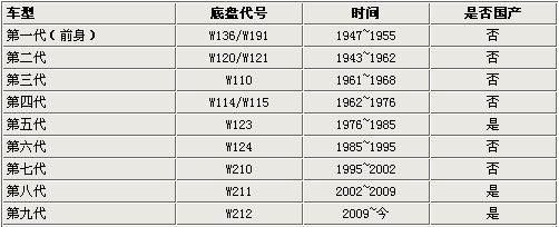 盡管奔馳和一汽都對引進(jìn) 這款車閉口不談。但事實上,這批最早的國產(chǎn)奔馳在90年代初期還是有很大的影響力。在當(dāng)時的北京街頭,幾乎可以見到從40年代到90年代所有的奔馳車型, 最常見的就是奔馳230E。 歷代奔馳E級轎車 奔馳E級車的歷史只追溯的二戰(zhàn)后,所以170型車從站后的1947年算起,并沒有算起在戰(zhàn)前的生產(chǎn),最初在國內(nèi)組裝生產(chǎn)的奔馳W123為其在淘汰的上一代產(chǎn)品。 1947年第一代E級轎車:W136