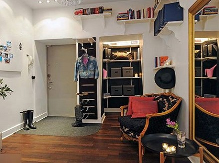 剔除笨重規(guī)矩的大型家具,利用靈活度較高的擱架將進門處的畸零空間改置成了衣帽間。運用順勢而設的布局,遮蓋了房型本身的缺陷,并成為了空間打造的點睛之作。