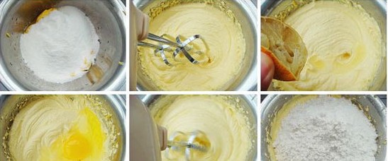 原料:黃油240克、糖粉150克、鹽少許、雞蛋2個、檸檬汁幾滴、低筋面粉420克、美國大杏仁適量。 烘焙工具:(長帝25升4烤盤的量) 做法: 1、黃油室溫軟化后,加糖粉打發(fā),滴幾滴檸檬汁混合均勻; 2、分兩次加入雞蛋打發(fā)均勻; 3、篩入低筋面粉切拌均勻; 4、烤盤上鋪錫紙,將面團放入裱花袋中,擠出曲奇的形狀; 5、將美國大杏仁輕輕壓到曲奇上; 6、烤箱預熱180度,烤箱中層烤20分鐘左右即可。
