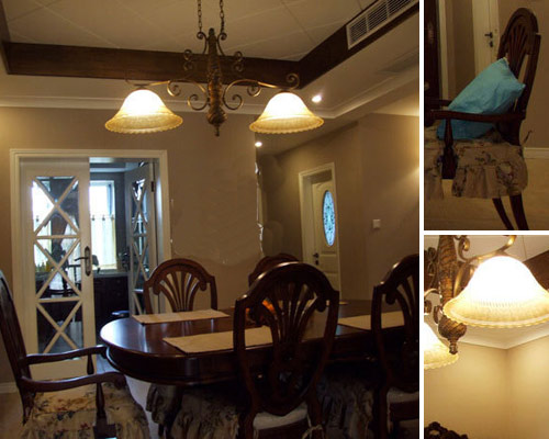 編輯點評:餐廳用深褐色的實木的餐桌,非常具有美式范兒,餐廳的鐵藝吊燈非常的漂亮。 臥室