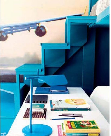 將書寫和睡眠區(qū)域疊起來,同樣是需要安靜的環(huán)境,向上發(fā)展是個(gè)好辦法。