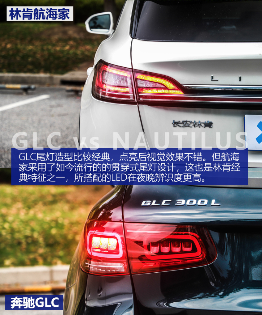 此次對(duì)比的車型分別是指導(dǎo)價(jià)為47.88萬元的林肯航海家2.7T 四驅(qū)總統(tǒng)版(以下簡(jiǎn)稱航海家)和指導(dǎo)價(jià)為47.68萬元的奔馳GLC 300L 4MATIC 豪華型(以下簡(jiǎn)稱GLC),兩車在價(jià)格方面十分接近。值得一提的是,由于航海家入門門檻更低,目前尊雅版2.0L以下車型還能享受購置稅減半政策,在豪華中型SUV中,幾乎僅此一家。因此再加上終端優(yōu)惠,價(jià)格誘惑力十足。 一、 造型都很有氣勢(shì) 在外觀部分,兩車主要差異主要體現(xiàn)在造型上。航海家的設(shè)計(jì)更加強(qiáng)調(diào)獨(dú)有的新美式豪華感;奔馳GLC則整體造型更偏時(shí)尚運(yùn)動(dòng)。而且外在配置上,航海家配備全車多層隔音玻璃、主動(dòng)進(jìn)氣格柵、藍(lán)牙鑰匙等等,豪華體驗(yàn)感更好。而GLC多了運(yùn)動(dòng)套件,更注重視覺感受,不過一些便利的科技配置依然有些薄弱。
