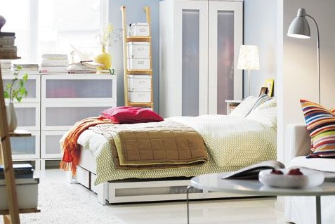 多購置收納式儲藏柜,使空間具有更強收納功能,在視覺上看不到什么雜物。