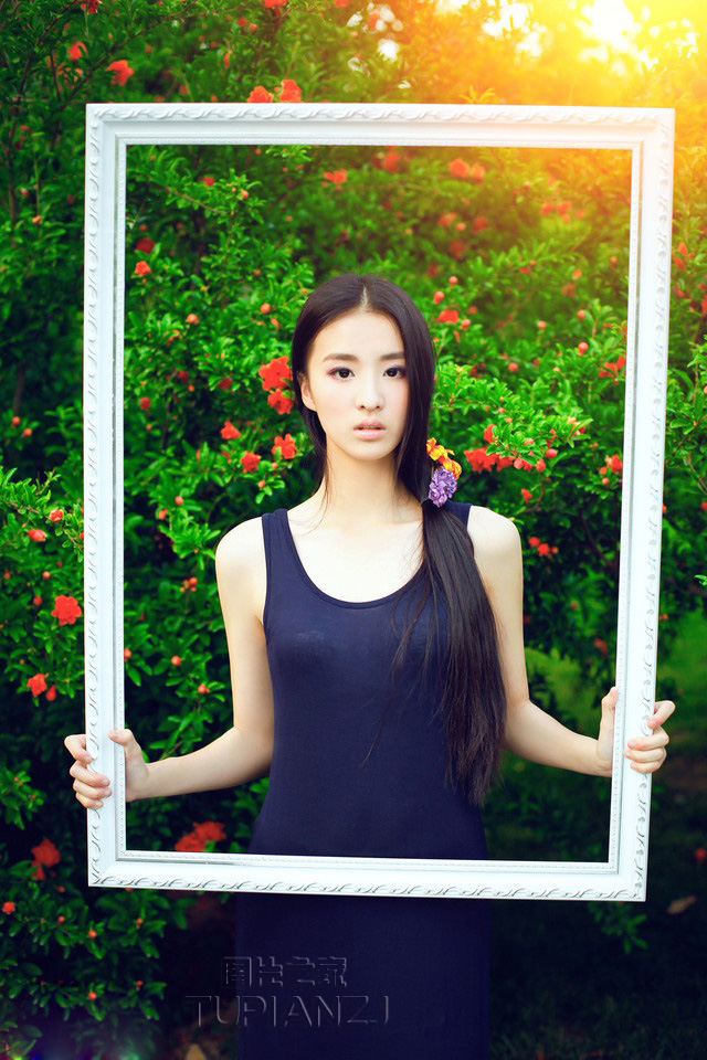 畫框中的清純妹子 叢林中唯美寫真圖片