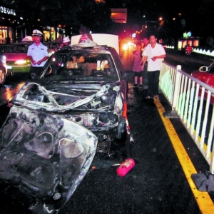 出租車被燒得面目全非 夏季是汽車自燃事故多發(fā)季節(jié)。一旦汽車自燃,如果車上有滅火器,或許能給車主挽回巨大損失?墒,記者近日走訪發(fā)現(xiàn),一些私家車沒有配備滅火器,有些車主對(duì)于車載滅火器如何配備及使用,了 ...