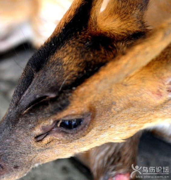 2012年8月14日,在義烏一農(nóng)家餐館內(nèi),一頭等待宰殺上餐桌的小黃麂在流淚。 在浙江義烏一農(nóng)家餐館內(nèi),一頭等待宰殺上餐桌的小黃麂在絕望地掙扎。 這頭黃麂大約有10幾公斤,兩只前腳的蹄子已被夾斷, ...