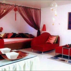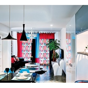 顏色既要熱情奔放,又不能喧賓奪主的搶了家具配飾的光彩,要求有些苛刻,但設(shè)計師處理的很討巧。