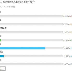 女同胞們,說(shuō)說(shuō)你的起步價(jià)是什么?有房、有車、有能力、有前途、愛你的...。只能選一個(gè),你選哪個(gè)呢?可能男同胞的你想說(shuō),現(xiàn)在這個(gè)浮躁的社會(huì),肯定都選有房有車的。但這項(xiàng)調(diào)查可能會(huì)讓你大跌眼鏡。 這項(xiàng)網(wǎng)絡(luò)調(diào)查針 ...
