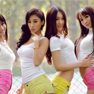近日,嫩模組合風花雪月拍運動寫真,四美女甜美擺拍。
