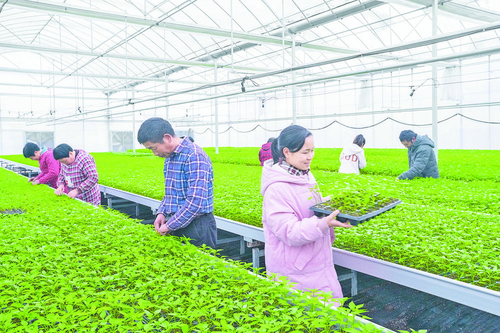 2月8日下午,在佛堂蔬菜產(chǎn)業(yè)園的育苗基地內(nèi),一株株蔬菜苗已冒出綠油油的嫩芽,一派生機(jī)勃勃的景象。種植大戶林獻(xiàn)文正在實(shí)地查看園區(qū)內(nèi)數(shù)字化育苗的生長情況。 據(jù)了解,佛堂蔬菜產(chǎn)業(yè)園由佛堂鎮(zhèn)黨委政府、市市場發(fā)展集團(tuán)有限公司等聯(lián)合打造,占地面積約450畝,總投資約5000萬元,采用“土地統(tǒng)一流轉(zhuǎn)、設(shè)施統(tǒng)一管理、農(nóng)資農(nóng)機(jī)統(tǒng)一服務(wù)、品牌統(tǒng)一打造、食品安全統(tǒng)一監(jiān)測”五統(tǒng)一模式進(jìn)行開發(fā)和運(yùn)營。 “自己育苗環(huán)境溫度比較低,這里育苗溫度可以控制,這樣的苗肯定長得比較好!绷肢I(xiàn)文表示,和傳統(tǒng)的育苗模式相比,基地內(nèi)的苗生長更加整齊,存活率更高。 連日來,為保障春耕育苗安全,基地開展了工廠化數(shù)字化育苗,利用部署在現(xiàn)場的各種傳感節(jié)點(diǎn)和智能感知,為春耕育苗提供精準(zhǔn)化種植、可視化管理、智能化決策。 義烏市農(nóng)業(yè)開發(fā)有限公司總農(nóng)技師付細(xì)華介紹,“數(shù)字化育苗,一可以保證出芽的整齊度,其二,因?yàn)槭怯脵C(jī)器澆水施肥,整塊苗濕度比較均勻,不會(huì)產(chǎn)生中間哪一塊干哪一塊濕,可以保證苗的存活率。”此外,數(shù)字化育苗的生產(chǎn)方式和傳統(tǒng)模式相比,單位面積的種植數(shù)量一平方米可增長40%。 截至目前,佛堂蔬菜產(chǎn)業(yè)園春季育苗涵蓋大白菜、辣椒、茄子、番茄等九類蔬菜苗,共計(jì)18個(gè)品種,33.65萬株。其中自主培育苗32.13萬株,幫人代育苗1.52萬株,可售蔬菜苗21.36萬株。 “菜籃子”折射大民生,關(guān)系著千家萬戶。下一步,佛堂鎮(zhèn)將穩(wěn)步推進(jìn)春耕備耕工作,促進(jìn)農(nóng)業(yè)生產(chǎn)有序進(jìn)行,爭取實(shí)現(xiàn)“新春開好局”,同時(shí),堅(jiān)持以數(shù)字化為牽引,加快推進(jìn)農(nóng)業(yè)“雙強(qiáng)”示范區(qū)成型,確保育秧、烘干兩大中心盡早投用,高標(biāo)準(zhǔn)打造農(nóng)業(yè)現(xiàn)代化示范標(biāo)桿。 |
