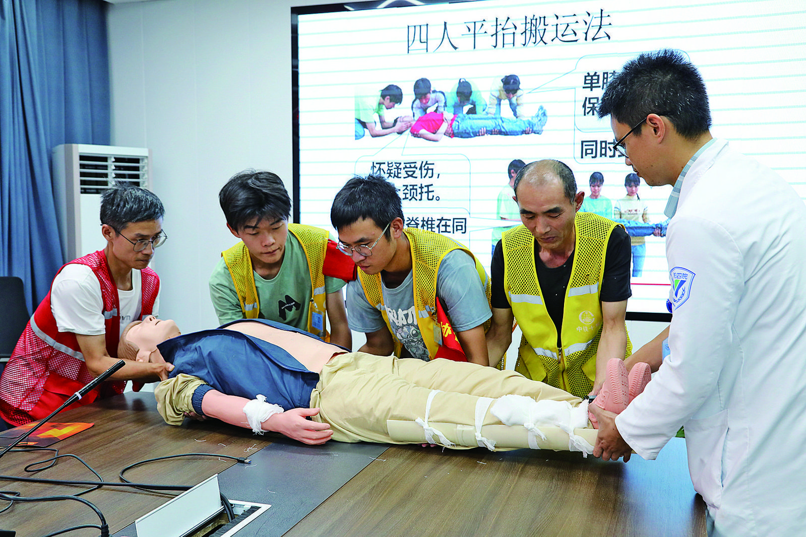 昨日,市急救中心應(yīng)中鐵十局義烏物流園項目部邀請,聯(lián)合浙大四院開展“急救宣傳進(jìn)工地 安全生產(chǎn)護(hù)平安”活動,為一線建筑工友們送上了一堂既有理論又有實操的實用急救知識課。 培訓(xùn)以“理論+實操+模擬情景”的方式,為一線建筑工人們普及心肺復(fù)蘇、傷員轉(zhuǎn)移、高溫中暑等情景下的實用急救知識。期間,醫(yī)護(hù)人員為工友們進(jìn)行了心肺復(fù)蘇、止血包扎、骨折固定及受傷人員的搬運(yùn)等操作示范,手把手地指導(dǎo)工友們進(jìn)行傷情判別、人工呼吸、胸外心臟按壓等急救技能的實際操作。 市急救中心相關(guān)負(fù)責(zé)人表示,此次急救知識與技能培訓(xùn)活動,旨在為突發(fā)事故的急救提供堅實保障,讓每一個“第一目擊者”充分把握黃金施救時間,科學(xué)有效地施救,共同筑牢安全生產(chǎn)防線。 |