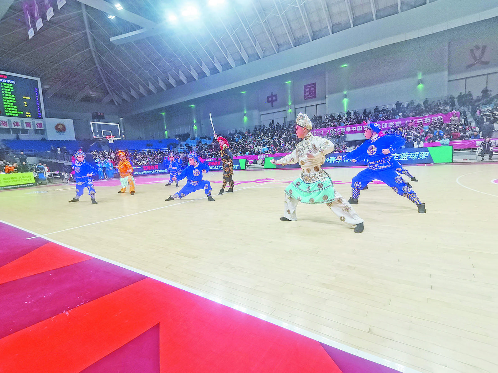 12月17日晚,梅湖體育中心體育館迎來了2023—2024賽季W(wǎng)CBA聯(lián)賽浙江稠州銀行女籃對戰(zhàn)石家莊英勵,兩千多名球迷到場助威。在中場休息時,由市非物質(zhì)文化遺產(chǎn)保護中心表演的《武戲集錦》,瞬間吸引了場內(nèi)觀眾,精彩的表演贏得了陣陣掌聲和歡呼聲。