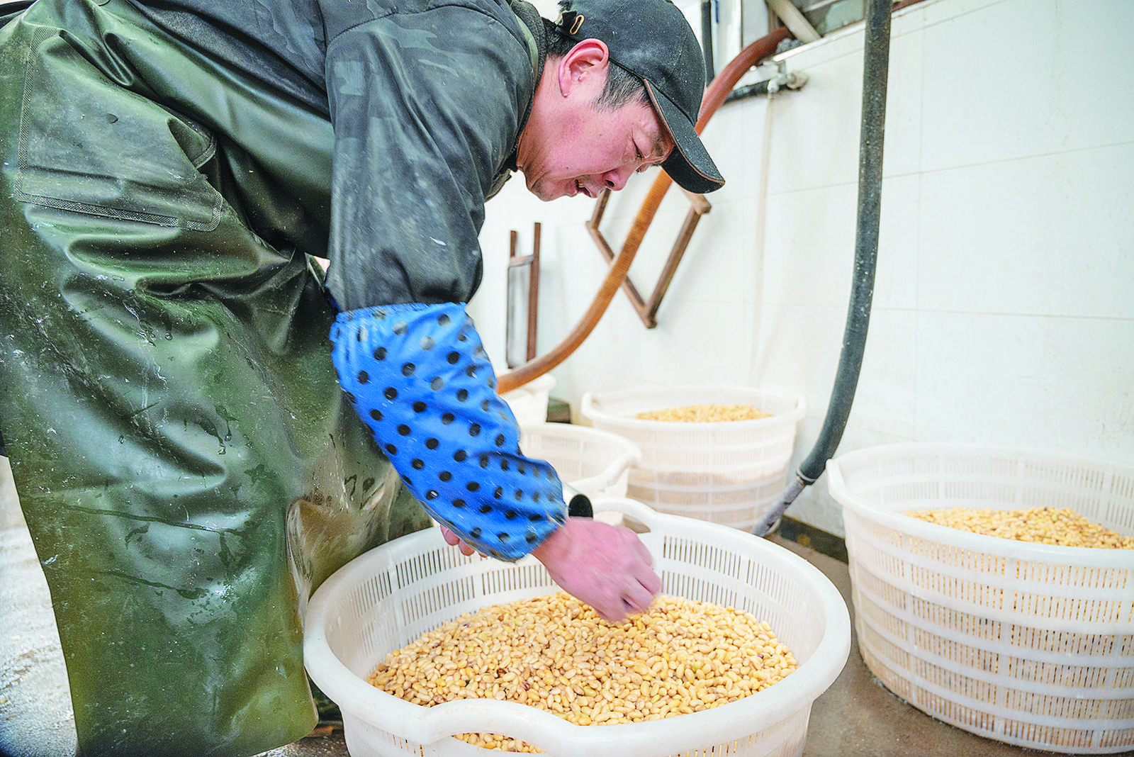 我叫丁啟林,今年61歲,佛堂鎮(zhèn)稽亭村人,是佛堂千張制作技藝非遺傳承人。 義烏豆制品加工歷史悠久,伴隨豆腐制作,豆腐皮、豆腐干、油泡、千張制作應(yīng)運(yùn)而生。豆香味濃的佛堂千張,是深藏在義烏市民記憶深處的味道。 我家做佛堂千張已經(jīng)很多年了。做千張第一步,挑選顆粒飽滿的黃豆。每一顆黃豆都要精挑細(xì)選,這個(gè)絕對(duì)不能偷懶。做千張的時(shí)候,要是有壞豆、爛豆充進(jìn)去,肯定影響千張的口感,因?yàn)橐活w爛豆,可能會(huì)整批報(bào)廢,那就得不償失了。 第二步,把挑選好的黃豆加清水浸泡。泡豆這個(gè)環(huán)節(jié)大有講究,我一般會(huì)根據(jù)季節(jié)、氣候、溫度的變化調(diào)整黃豆的浸泡時(shí)間。天氣熱的時(shí)候,時(shí)間就泡短一點(diǎn)。天氣冷的時(shí)候,時(shí)間就要泡久一點(diǎn)。具體浸泡時(shí)間,一般控制在6到14小時(shí)。 第三步,將浸泡好的大豆清洗干凈,放入石磨、加水磨漿。以前,我用的都是傳統(tǒng)石磨,那個(gè)比較辛苦,需要純手工一下下拉磨,還要不停地加水,慢慢磨出漿來(lái),F(xiàn)在,我一般都用機(jī)器磨。磨出來(lái)的豆?jié){,會(huì)比以前手工磨得更加細(xì)膩。 第四步,將磨出來(lái)的豆?jié){倒入鍋里,再用猛火蒸煮。等水開后,再起鍋倒入漿桶或缸內(nèi)進(jìn)行燜漿。以前,我們家都是用柴火灶煮豆?jié){的,這樣煮出來(lái)的豆?jié){帶著淡淡的柴火氣,味道也會(huì)更加特別。 土灶添柴火很有講究,可以這么說(shuō),會(huì)添柴火了、能掌握火候和時(shí)間了,豆制品制作技藝你就已經(jīng)學(xué)會(huì)了一半。任何豆制品的制作,都有不同的工藝、時(shí)間和火候,這個(gè)需要制作的人反復(fù)摸索,找出一套適合自己的習(xí)慣,靠別人是很難教會(huì)的。 現(xiàn)在科技進(jìn)步了,我們也升級(jí)了做佛堂千張的工具,改用專門定制的機(jī)器煮漿。一來(lái)更方便,二來(lái)溫度和火候也可以通過(guò)科技保持一個(gè)相對(duì)穩(wěn)定的狀態(tài)。 第五步,點(diǎn)鹵。當(dāng)漿溫降至70攝氏度時(shí),我就會(huì)用銅瓢點(diǎn)鹵,并將其均勻攪拌成豆腐花。鹵水中的鹽分和其他成分,可以與豆?jié){中的蛋白質(zhì)發(fā)生反應(yīng),形成凝固物質(zhì)。這種凝固作用,可以讓豆制品在制作過(guò)程中變得堅(jiān)實(shí),保持了一定的結(jié)構(gòu)穩(wěn)定性。 第六步,把豆腐花勺舀起缸,攪碎均勻澆在百葉箱布上,折布蓋花,依次澆制。 第七步,把澆制好的千張模,分三次慢壓成型。要一層一層地定型,把水壓出,千張的品質(zhì)才會(huì)好。大概壓半個(gè)小時(shí),千張就成型了。 最后一步,脫去豆包布,將一張張千張晾曬降溫,涼了就可以收掉。這個(gè)過(guò)程中,要把沒(méi)做好的、成型不規(guī)整的次品挑出來(lái)去掉。 八個(gè)步驟,佛堂千張基本上算是做好了。其中,點(diǎn)鹵可以說(shuō)是最關(guān)鍵的一步。豆花的老嫩,直接決定千張的韌勁程度。千張與豆腐有所不同,豆腐說(shuō)鹽鹵好吃,可千張卻要用石膏。為確保新鮮,我們家每天都是賣多少做多少,賣完就收攤,確保產(chǎn)品不會(huì)變味。 義烏各鎮(zhèn)街都有做豆腐、千張的老作坊,但是我們佛堂千張的做法卻有著很多不一樣的地方。佛堂千張以厚度均勻、豆香味濃出名,佛堂千張的含水量大、吃起來(lái)口感絲滑軟嫩但又不失韌性,是尋常老百姓飯桌上不可或缺的佳肴。 又是一年春節(jié)時(shí),佛堂千張的香味隨著濃濃年味飄入千家萬(wàn)戶。最近,我們每天要做十來(lái)?yè)?dān)(1000斤)左右的千張,仍然供不應(yīng)求。 佛堂千張多年來(lái)深受老百姓喜愛(ài),離不開一代代老手藝人兢兢業(yè)業(yè)、精益求精的技藝傳承,正是這樣一絲不茍、持之以恒的工匠精神,我們才能把老祖宗留下的傳統(tǒng)技藝進(jìn)行保留和傳承,這也是我們一家多年來(lái)一直不變的堅(jiān)守。 佛堂千張,可以說(shuō)是一種百搭的豆制品。比如說(shuō)義烏的家常菜——芹菜炒千張,炒出來(lái)的菜品清清白白,特別好看。還有我們家經(jīng)常會(huì)做千張燉排骨,高壓鍋先把排骨燉爛,然后再把新鮮的千張放進(jìn)去,再燉上幾分鐘。這樣一來(lái),排骨湯的鮮味就都被千張完美地吸收進(jìn)去,吃起來(lái)的口感特別鮮美。另外,各大餐館、酒店的酒宴、配菜也都會(huì)用到佛堂千張。 要說(shuō)這些年佛堂千張最出名的用途,那肯定就是佛堂千張面了。一碗合格的千張面是什么樣的?面條與清湯的組合,配上雪白的千張、明黃的榨菜皮、綠色的蔥花,喜歡吃辣的人還可以加一勺紅彤彤的辣油,這就是我們佛堂人生活中普通卻不可或缺的美味。 越是簡(jiǎn)單的東西,想要做好越是不容易。看似簡(jiǎn)單的一碗佛堂千張面,實(shí)則對(duì)食材的新鮮度要求很高。好的千張面館,都會(huì)堅(jiān)持食材品質(zhì)。面條必須是4個(gè)小時(shí)內(nèi)手工制成的,千張也必須是當(dāng)日購(gòu)買的。千張的好壞,一定程度也決定了這碗面的品質(zhì)。 2021年,佛堂千張制作技藝入選義烏市第八批非物質(zhì)文化遺產(chǎn)代表性項(xiàng)目,我也很榮幸成為佛堂千張制作技藝非遺傳承人。 做豆制品是一個(gè)很辛苦的行當(dāng),基本上我每天四五點(diǎn)就要起床,夏天的時(shí)候可能更
