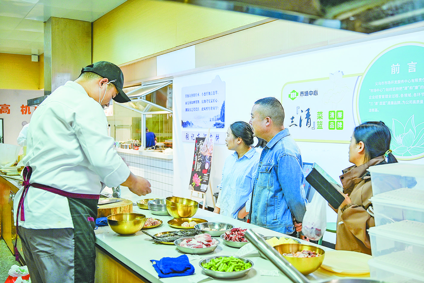 一踏進(jìn)新馬路鄰里市集的大門,就能聞到濃郁的飯菜香。明明是菜市場(chǎng),何來餐館?走近一瞧,30平方米左右的小空間,6口炒鍋齊上陣,蒸箱、烤箱、炸鍋一應(yīng)俱全,這是新馬路鄰里市集最新推出的“共享廚房”區(qū)域。市民買好菜就能交給大廚加工,根據(jù)菜品復(fù)雜程度收取10元至35元不等的加工費(fèi),便能品嘗到專業(yè)大廚烹飪的美食,引得顧客紛至沓來。 菜市場(chǎng)里的“煙火氣” “老板,剛買了6只螃蟹,幫我做清蒸的!”“今天換換口味,做個(gè)避風(fēng)塘雞翅,我晚點(diǎn)來。 薄刻煜挛,是大多數(shù)餐館休息的時(shí)候,可新馬路鄰里市集里的“潤(rùn)昱食集”食材加工坊卻非常熱鬧,來詢問菜品、送食材、預(yù)訂菜品的市民接踵而至。老板朱翠紅告訴記者,從早上九點(diǎn)到晚上七點(diǎn),大家基本沒時(shí)間休息,不是忙著接訂單,就是忙著炒菜,飯點(diǎn)前那段時(shí)間是最忙的,每口鍋都在“工作”,這樣的忙碌狀態(tài)要持續(xù)一個(gè)半小時(shí)。 自10月中旬正式營(yíng)業(yè)以來,這一幕已經(jīng)是“潤(rùn)昱食集”的日常寫照了!霸疚覀冎挥1名廚師,生意火起來后,又新招了1名廚師和1名切配菜人員,不然根本忙不過來。”朱翠紅說道。 “又來啦!今天吃點(diǎn)什么?”“今天幫我做個(gè)梅干菜仔排和紅燒魚塊吧!笔忻窭钕壬掷锪嘀鴰状鼊傇谛埋R路鄰里市集買好的菜,便沖著食材加工坊而來!拔揖妥≡诟浇瑤缀醺粢惶炀鸵獊硪淮,和老板都混熟了。”李先生笑道。 對(duì)附近的許多居民來說,食材加工坊已然成為他們的另一個(gè)“家庭廚房”。食材加工坊邊上還擺放了8張4人桌,現(xiàn)買、現(xiàn)做、現(xiàn)吃,只要是想吃的菜都能在這里吃到。 下午4點(diǎn)起,菜市場(chǎng)里的“煙火氣”不斷升騰。需要“代炒”的顧客眼見多了起來,廚師游曉斌也進(jìn)入了一天中最忙的時(shí)候。臺(tái)面上,鮑魚、肉片、四季豆、老虎斑等菜品整齊碼放在盤中,另一邊,游曉斌熟練地翻炒、掂鍋,提前處理好的菜品只需一兩分鐘便能出鍋。作為一名從業(yè)十年的“老”廚師,紅燒肉、酸菜魚、雞煲等都是游曉斌的拿手好菜,以酸菜魚為例,生意好的時(shí)候一天就能賣出20余份,深受顧客青睞。 “現(xiàn)在大家對(duì)‘代炒’服務(wù)的接受度還是比較高的,一天下來至少能賣出100道菜。像這樣一桶20升的油,兩天就能用完!庇螘员笳f道。 “代炒”服務(wù)何以興起 “潤(rùn)昱食集”食材加工坊的前身,原本只是一個(gè)專做海鮮加工的檔口!白铋_始開這個(gè)檔口,是想為買海鮮的顧客提供加工服務(wù),但經(jīng)營(yíng)了一段時(shí)間后發(fā)現(xiàn),顧客的需求并不大!敝齑浼t告訴記者,剛開業(yè)的時(shí)候經(jīng)歷了一段迷茫時(shí)期,“后來,慢慢有顧客來問我們,這里能不能幫忙加工家常菜?這給了我們新的靈感! 在經(jīng)過與菜市場(chǎng)內(nèi)經(jīng)營(yíng)戶、市民的溝通后,朱翠紅發(fā)現(xiàn),大家普遍對(duì)菜品加工有更大的需求。“附近有居民區(qū)和學(xué)校,對(duì)許多上班族、家長(zhǎng)來說,‘代炒’服務(wù)既省時(shí)又省力!敝齑浼t了解到這一需求后,就將檔口服務(wù)往“市民買菜,大廚加工”的方向轉(zhuǎn)變。據(jù)朱翠紅觀察,每天來“代炒”的顧客主要集中在30至50歲之間,有剛下班的“上班族”,也有“代炒”好菜就去接孩子的家長(zhǎng)。 “代炒”服務(wù)的興起,省時(shí)省力只是一方面,味道好、收費(fèi)合理、環(huán)境干凈,也是留住顧客的重要因素。小炒蔬菜10元、小炒肉類15元、水煮肉菜20元……各種做法售價(jià)明碼標(biāo)價(jià)。還可以線上點(diǎn)單,提供代買服務(wù),依舊只收取加工費(fèi)。朱翠紅說,相比于在餐館點(diǎn)菜,“代炒”更具性價(jià)比!皩(duì)我們來說,分量多、分量少都是一個(gè)價(jià),尤其對(duì)于家庭聚餐來說是再合適不過了。而且我們是明檔模式,炒菜全程清楚可見,讓顧客吃得安心! 在這些因素的合力助推下,新馬路鄰里市集“共享廚房”的知名度越來越高,許多住在附近的居民都知道,“新馬路鄰里市集里還能炒菜”。就這樣,“潤(rùn)昱食集”食材加工坊的“代炒”生意越做越紅火,每日營(yíng)收較最初有了約3倍的增長(zhǎng)。 實(shí)際上,應(yīng)市場(chǎng)需求,“代炒”服務(wù)已在上海、深圳及省內(nèi)等多地菜市場(chǎng)中出現(xiàn)。在我市,新馬路鄰里市集是第一次嘗試!皾(rùn)昱食集”食材加工坊作為我市首家“共享廚房”,它的成功運(yùn)營(yíng)為“代炒”服務(wù)的進(jìn)一步推廣打下了堅(jiān)實(shí)的基礎(chǔ)。朱翠紅告訴記者,目前來“代炒”的主要是附近居民,服務(wù)市民的范圍較為有限。“最近我正考慮與市中心菜市場(chǎng)、詞林菜市場(chǎng)等合作,將‘代炒’服務(wù)引入到更多菜市場(chǎng)中,讓更多市民享受到這一便利服務(wù)。” “菜市場(chǎng)+”服務(wù)迭代升級(jí) 近年來,市場(chǎng)集團(tuán)持續(xù)探索“菜市場(chǎng)+”服務(wù)的迭代升級(jí),致力于改變大眾對(duì)菜市場(chǎng)“臟亂差”的刻板印象,在菜市場(chǎng)的日常運(yùn)營(yíng)中融入更多便民服務(wù),不僅使得環(huán)境衛(wèi)生大幅改善,服務(wù)內(nèi)容也更為多元化、便民化。 新馬路鄰里市集是市場(chǎng)集