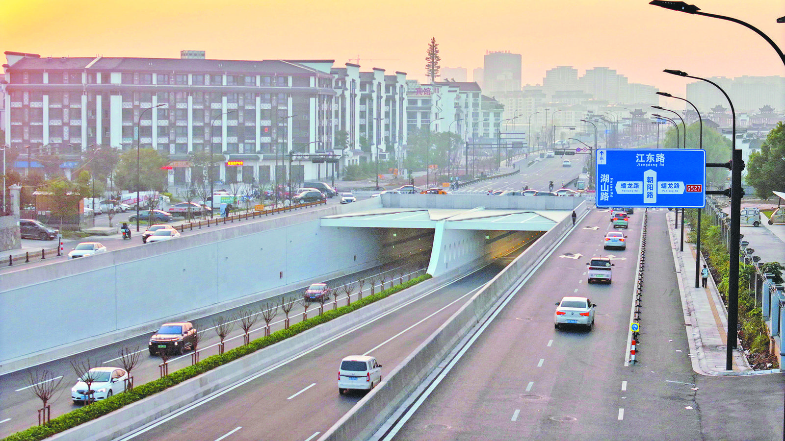昨日上午,佛堂古鎮(zhèn)首條過(guò)江隧道——朝陽(yáng)路下穿隧道正式建成通車。 據(jù)義烏市雙江湖集團(tuán)項(xiàng)目負(fù)責(zé)人介紹,朝陽(yáng)路下穿隧道是重點(diǎn)項(xiàng)目G527與臨蒼公路義烏佛堂聯(lián)絡(luò)線工程的重要部分,該工程始于朝陽(yáng)路與佛堂大道交叉口,終點(diǎn)至臨蒼公路,雙向六車道。 作為鎮(zhèn)區(qū)兩條主要的經(jīng)濟(jì)發(fā)展軸線之一,該項(xiàng)目的建成完善了佛堂古鎮(zhèn)總體構(gòu)架“四橫四縱一環(huán)”主骨架路網(wǎng)中最主要的一橫,進(jìn)一步實(shí)現(xiàn)了佛堂鎮(zhèn)內(nèi)外交通的互聯(lián)互通。 |