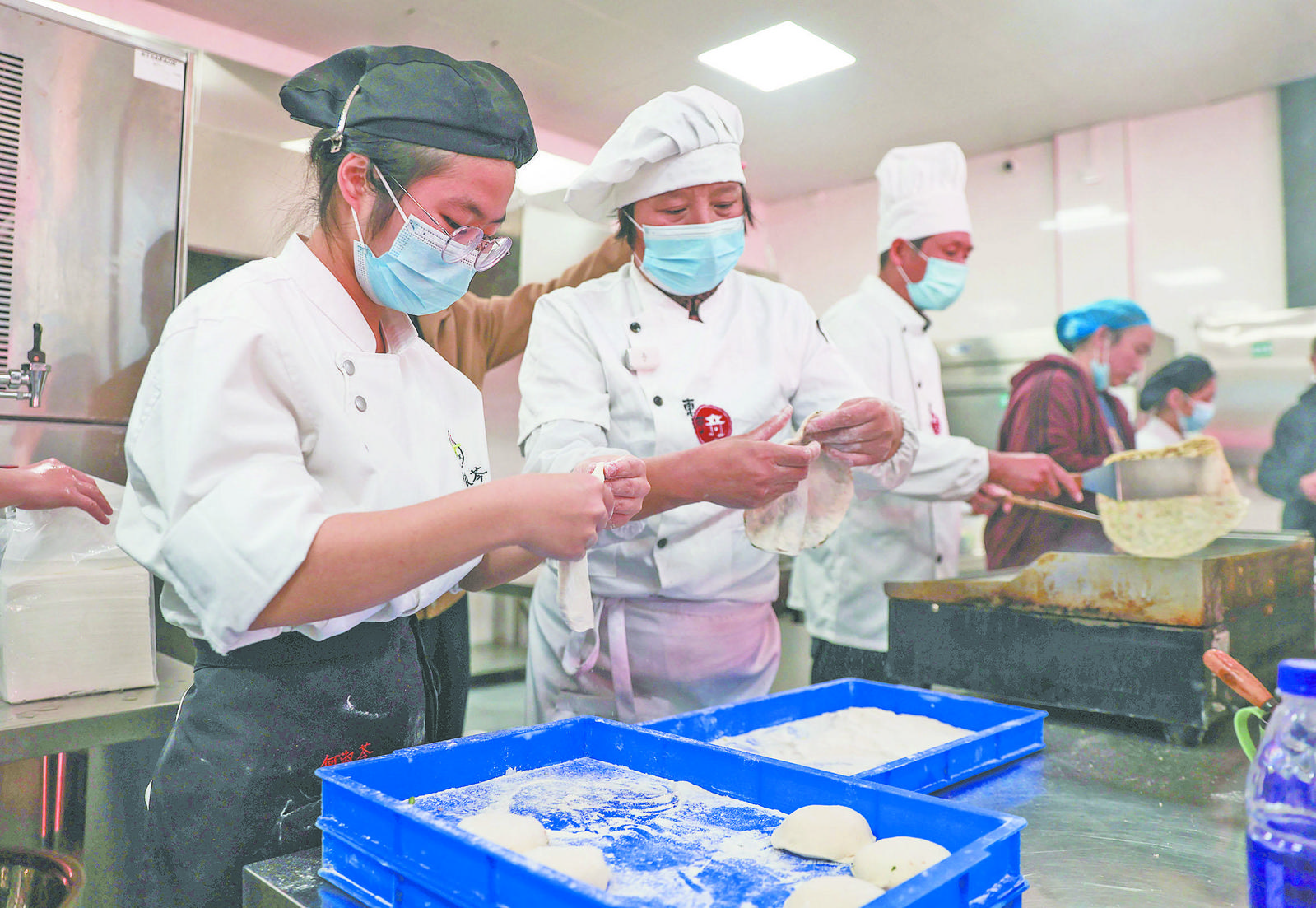 11月28日,市文化和廣電旅游體育局“百縣千碗·知味義烏”活動走進市城鎮(zhèn)職業(yè)技術(shù)學校。這是“百縣千碗·知味義烏”進機關(guān)、進校園、進社區(qū)、進景區(qū)、進高速服務區(qū)、進星級飯店等公共服務場所“六進”活動之一,旨在進一步擦亮義烏美食IP,弘揚義烏傳統(tǒng)美食文化。 活動現(xiàn)場熱火朝天,該校烹飪專業(yè)學生與多位美食專家,共同開啟探索味蕾記憶好“食”光。學生們身著整潔的廚師服,圍在美食專家身邊,仔細聽講制作流程及注意事項,從原料的選擇到配比的精準,從火候的掌握到成品的呈現(xiàn),每一步都充滿了匠心與智慧。 “糯米大概要蒸30分鐘,蒸熟的糯米經(jīng)過約300次的捶打后,會變得更柔軟更有韌勁!绷x烏麻糍非遺傳承人錢威邊捶打邊告訴學生。學生們紛紛動手嘗試,雖然手法略顯生疏,但在傳承人悉心指導下,也逐漸掌握了技巧。他們小心翼翼地將糯米團壓扁,包入香甜的紅糖芝麻餡,再刷上一層薄薄的黃豆粉,一個個軟糯香甜的麻糍便誕生了。 另一邊,東河肉餅制作區(qū)域香氣四溢,第六批浙江省非物質(zhì)文化遺產(chǎn)項目“義烏東河肉餅制作技藝”代表性傳承人張愛珍正在教學生們?nèi)绾纬冻鲇执笥直〉娜怙。這個步驟是東河肉餅制作過程中最關(guān)鍵的一步,也是最具技巧性的一步。最終在張愛珍與學生們的共同努力下,金黃色的東河肉餅新鮮出爐,外皮酥脆、內(nèi)餡鮮美,讓人垂涎欲滴。 除了美味的義烏特色小吃,學生們還跟著大廚們學習了義烏土肉圓、佛堂醋炒雞、紅燒肉等地道義烏菜肴做法。學生們在大廚的指導下,自己動手翻炒,彌漫在空中的香氣頓時吸引了一大批師生,他們早早就在食堂門口排起了長隊!斑@些菜品竟然出自我們學生之手,嘗起來和飯店的味道差不多!贝蠹壹娂姙閰⑴c制作的學生們點贊。 城鎮(zhèn)職校相關(guān)負責人表示,此次活動讓烹飪專業(yè)學生們親身體驗義烏特色小吃和地道菜肴的制作過程,掌握烹飪技藝,體會到食材選擇、烹飪技巧、口味搭配等方面的匠心獨運。 |