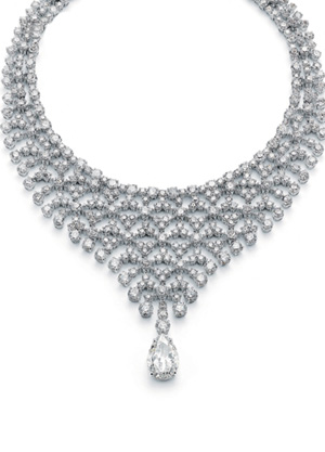Van Cleef & Arpels 高級(jí)珠寶花園系列白金鑲鉆石及藍(lán)寶石項(xiàng)鏈 白金鑲嵌鉆石的藍(lán)寶石項(xiàng)鏈,藍(lán)色是優(yōu)雅性感的顏色,這款新娘吊墜項(xiàng)鏈設(shè)計(jì)具有一種古典的味道,藍(lán)色的寶石將這款項(xiàng)鏈襯托的具有一種屬于新娘的優(yōu)雅氣質(zhì)。 Bulgari 頂級(jí)珠寶系列白金鉆石項(xiàng)鏈具有女王風(fēng)范的一款新娘吊墜項(xiàng)鏈,讓新娘的頸間顯的無(wú)比奢華,下面的一顆如水滴狀的鉆石是這款新娘項(xiàng)鏈的點(diǎn)睛之筆,將新娘的奢華與高貴通過(guò)這款項(xiàng)鏈完全的表現(xiàn)出來(lái)。 |