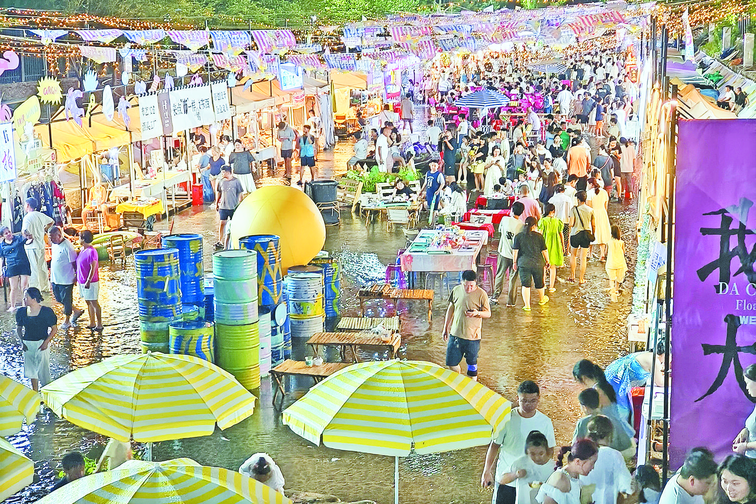 夏日傍晚,大陳鎮(zhèn)上坑仁村的水上市集逐漸熱鬧起來。夕陽映照下的八都溪波光粼粼,游客劉敏正帶著家人在淺水區(qū)嬉戲玩耍,歡笑聲不斷傳來,“這里的水特別清澈,孩子們玩得開心又放心,我們每年夏天都會來玩。”水上市集沿岸的彩燈漸次亮起,人群絡(luò)繹不絕,這般熱鬧景象,讓人難以想象,這個充滿活力的“網(wǎng)紅村”,幾年前還是一個因地理位置偏遠(yuǎn)而發(fā)展滯后的小山村。 坐落于八都水庫大壩腳下的大陳鎮(zhèn)上坑仁村,是八都溪流經(jīng)的首個村莊。過去由于缺乏產(chǎn)業(yè)支撐,村里年輕人大多選擇外出務(wù)工,留守的村民雖然守著溪水卻難尋致富門路。“那時八都溪水質(zhì)不穩(wěn)定,一到雨季就渾濁不堪,我們都不敢想能靠這條溪發(fā)展產(chǎn)業(yè)。”上坑仁村青年委員葉曉嵐回憶道,如何在保護(hù)生態(tài)的前提下激活溪水價值,讓村莊蝶變升級,成了鎮(zhèn)政府與村兩委亟待破解的難題。 轉(zhuǎn)變,始于一場“治水行動”。近年來,大陳鎮(zhèn)先后投入7000余萬元對八都溪進(jìn)行河道治理,實施了八都溪萬里清水河道工程(上坑仁至馬畈段)等,通過堤防加固、河道清淤、親水景觀建設(shè)等,打造“至美大陳”櫻花浪漫精品線。同時深化“河長制”,建立鎮(zhèn)、村、組三級聯(lián)動巡查機(jī)制,確保了治水工作的常態(tài)化和長效化。經(jīng)過數(shù)年治理,八都溪水質(zhì)穩(wěn)定提升至Ⅱ類以上,部分河段達(dá)到Ⅰ類標(biāo)準(zhǔn)。“水域整治后,不斷有周邊村民自駕來玩水,最多一天能有幾百人,這也讓我們看到了溪水的潛力!比~曉嵐說。 2021年,上坑仁村村兩委在鎮(zhèn)黨委帶領(lǐng)下,因地制宜謀劃了“水韻上坑仁”項目。以水經(jīng)濟(jì)為核心,打造集生態(tài)旅游、文化體驗、夜間經(jīng)濟(jì)于一體的鄉(xiāng)村振興新模式。將八都溪上坑仁段600米河道劃分為水上樂園與水上市集兩大區(qū)域,形成“晝夜聯(lián)動”的游玩場景!拔覀兇迨前硕枷鹘(jīng)的第一村,好山好水就是我們的致富資本!比~曉嵐介紹,當(dāng)?shù)剡探索出村集體以資源入股,政府以政策護(hù)航,運(yùn)營團(tuán)隊以創(chuàng)意參與,村民從“旁觀者”變?yōu)椤皡⑴c者”的共建機(jī)制,不斷將生態(tài)資源轉(zhuǎn)化為消費(fèi)場景的輕資產(chǎn)改造。 “每到傍晚,游客踩著溪水逛夜市,各種活動連番上場,特別熱鬧!比~曉嵐說,溪水清了,項目全了,游客也多了。2022年,項目投入使用后,首月便為村集體增收57萬元,這一成績讓村民們驚喜不已。2023年,村兩委進(jìn)一步提升業(yè)態(tài),將水上市集升級為“水上星光夜肆”,增設(shè)樂隊表演、特色小吃攤,打造沉浸式夜游場景。2024年,上坑仁村的“水經(jīng)濟(jì)”再升級,打造出集水上樂園、水上星光夜肆、瀑布咖啡等項目于一體的旅游線路,精準(zhǔn)契合市民夏季避暑游玩需求。今年暑期,上坑仁村水上市集大膽轉(zhuǎn)變風(fēng)格,主打充滿活力的“多巴胺風(fēng)格”,目前已吸引游客33萬余人次,營業(yè)額522萬余元,成了市民游客喜愛的“網(wǎng)紅打卡地”。 隨著人氣越來越旺,上坑仁村還聯(lián)合了溪后村、馬畈村開展接駁服務(wù),不僅有效分流了游客,2024年兩村還合計增收超70萬元,形成“一溪帶動多村富”的局面。同時,依托“八都共富黨建示范帶”,八都溪沿線村落整合資源形成差異化發(fā)展格局:上坑仁村主打“清涼玩水”,馬畈村以奇幻樂園吸引親子家庭,溪后村借龍蝦基地發(fā)展研學(xué)旅游等,將沿線項目“串珠成鏈”,共同構(gòu)建起農(nóng)文旅融合的“水上共富帶”。 村集體收入增加后,上坑仁村也不斷反哺民生。游客中心、兒童游樂長廊等建筑陸續(xù)建成,為村民統(tǒng)一購買意外保險,不斷推進(jìn)家庭醫(yī)生簽約服務(wù)等,讓發(fā)展紅利切實惠及村民!敖衲陥竺踩珕T、保潔員等崗位的村民就有70多人,大家都能輪流上崗。”葉曉嵐告訴記者,現(xiàn)在返鄉(xiāng)創(chuàng)業(yè)的村民也越來越多,實現(xiàn)了在“家門口”就業(yè)。 從昔日集體經(jīng)濟(jì)薄弱村,到如今的“網(wǎng)紅避暑地”,上坑仁村的蛻變,正是大陳鎮(zhèn)踐行“綠水青山就是金山銀山”理念的生動寫照。八都溪的清澈水流,不僅滋養(yǎng)了一方土地,更澆灌出鄉(xiāng)村振興的“共富之花”,為山村探索生態(tài)價值轉(zhuǎn)化提供了可復(fù)制、可推廣的實踐樣本。 |