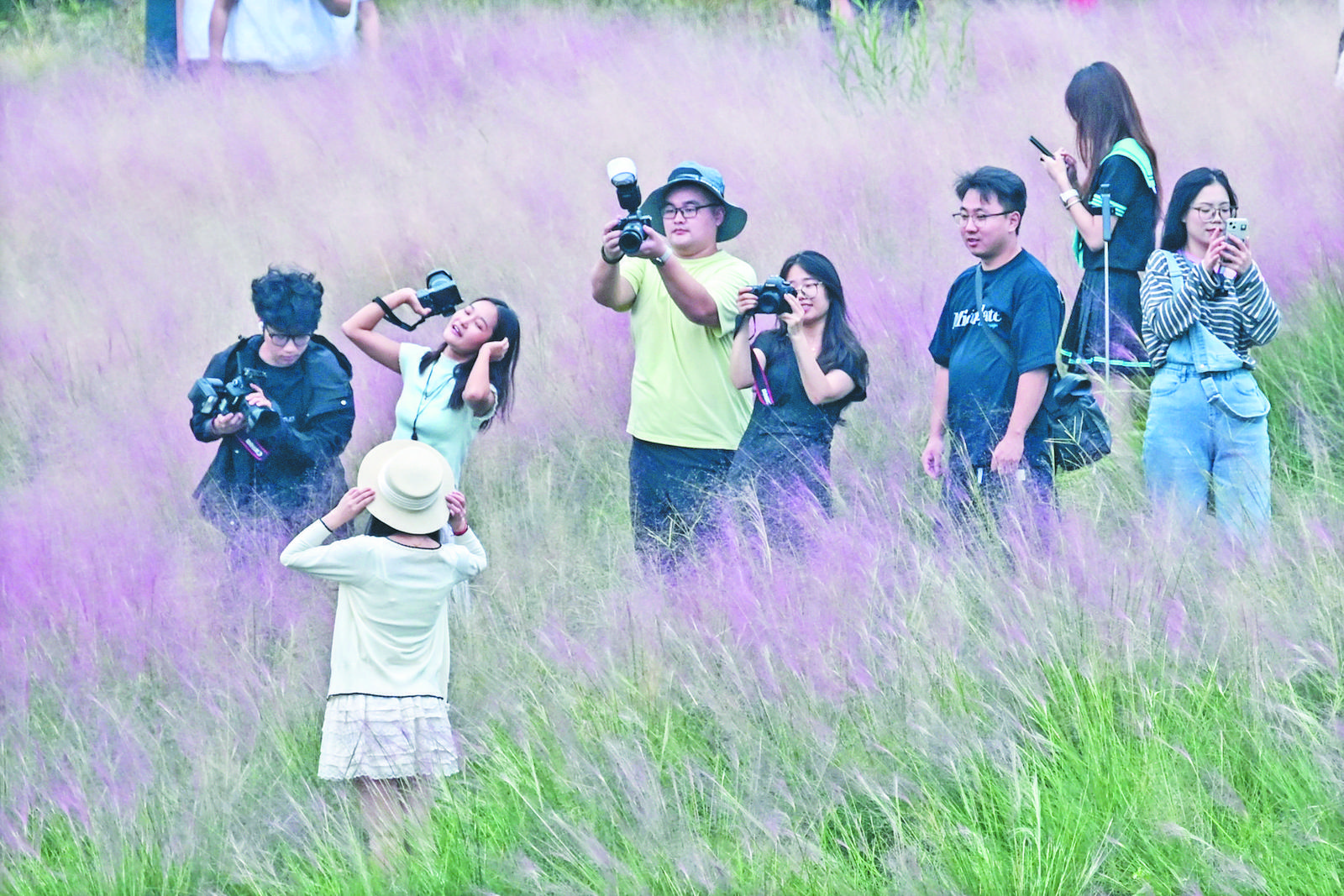 連日來,義烏植物園的粉黛亂子草迎來盛花期,粉色花海如夢(mèng)似幻,吸引眾多游客前來拍照打卡、嬉戲游玩。微風(fēng)拂過,輕柔的花穗隨風(fēng)搖曳,宛如地上泛起層層粉色波浪,成為秋日里一道浪漫的風(fēng)景線。 據(jù)城投植物園公司相關(guān)負(fù)責(zé)人介紹,粉黛亂子草花海位于植物園正大門建設(shè)湖大壩南側(cè),面積約4畝。粉黛亂子草為多年生植物,每年9月底至10月如期綻放,是觀賞粉黛亂子草的最佳時(shí)節(jié)。 |