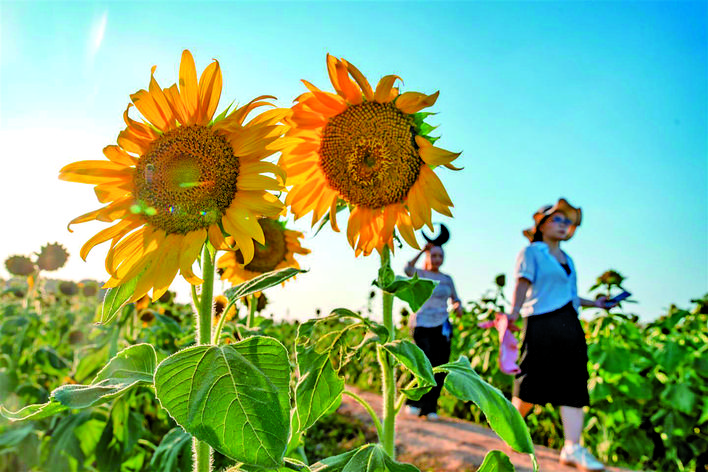 這些天,義烏植物園化身金色童話世界,20萬株連綿的向日葵在風(fēng)中搖曳。金黃色的花瓣環(huán)繞著花盤,形成層層疊疊的金色波浪,構(gòu)成了一幅動人的自然油畫。 連日來,不少市民游客驅(qū)車前來打卡,漫步于花海,年輕的女孩們紛紛駐足,拍照留影;家長帶著孩子一起享受大自然的芬芳,成為一道獨特的風(fēng)景線。 據(jù)了解,此片向日葵花海共53畝,位于植物園西城北路P2停車場對面。為了讓游客更好地體驗向日葵花海的魅力,園區(qū)特別設(shè)置了多處打卡點和步道,方便游客們從不同角度欣賞這片金色海洋。 |