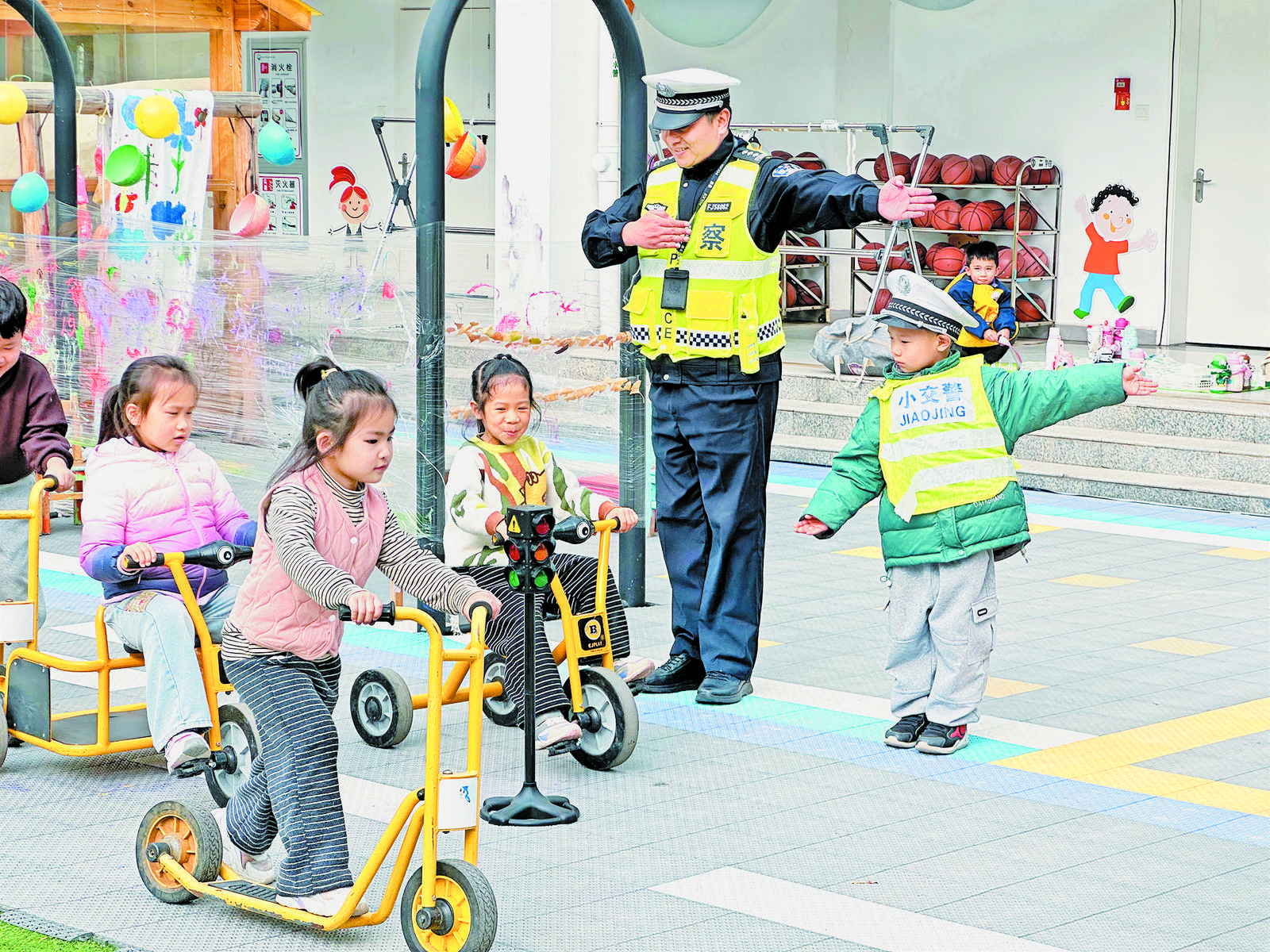 12月2日是第十四個(gè)“全國(guó)交通安全日”。當(dāng)天,市公安局交警大隊(duì)江東中隊(duì)交警化身“安全老師”走進(jìn)釣魚(yú)磯幼兒園,為萌娃們帶來(lái)一場(chǎng)趣味十足的交通安全主題宣傳活動(dòng)。 活動(dòng)中,交警結(jié)合幼兒認(rèn)知特點(diǎn),用通俗易懂的語(yǔ)言和卡通圖片,生動(dòng)講解紅綠燈、斑馬線的作用,告知幼兒要牢記“紅燈停、綠燈行,過(guò)馬路要牽大手”的安全口訣。通過(guò)“小小交通員”情景模擬,孩子們體驗(yàn)了正確過(guò)馬路、避讓車輛的方法,糾正“馬路邊玩!薄败嚧吧祛^”等危險(xiǎn)行為。 |