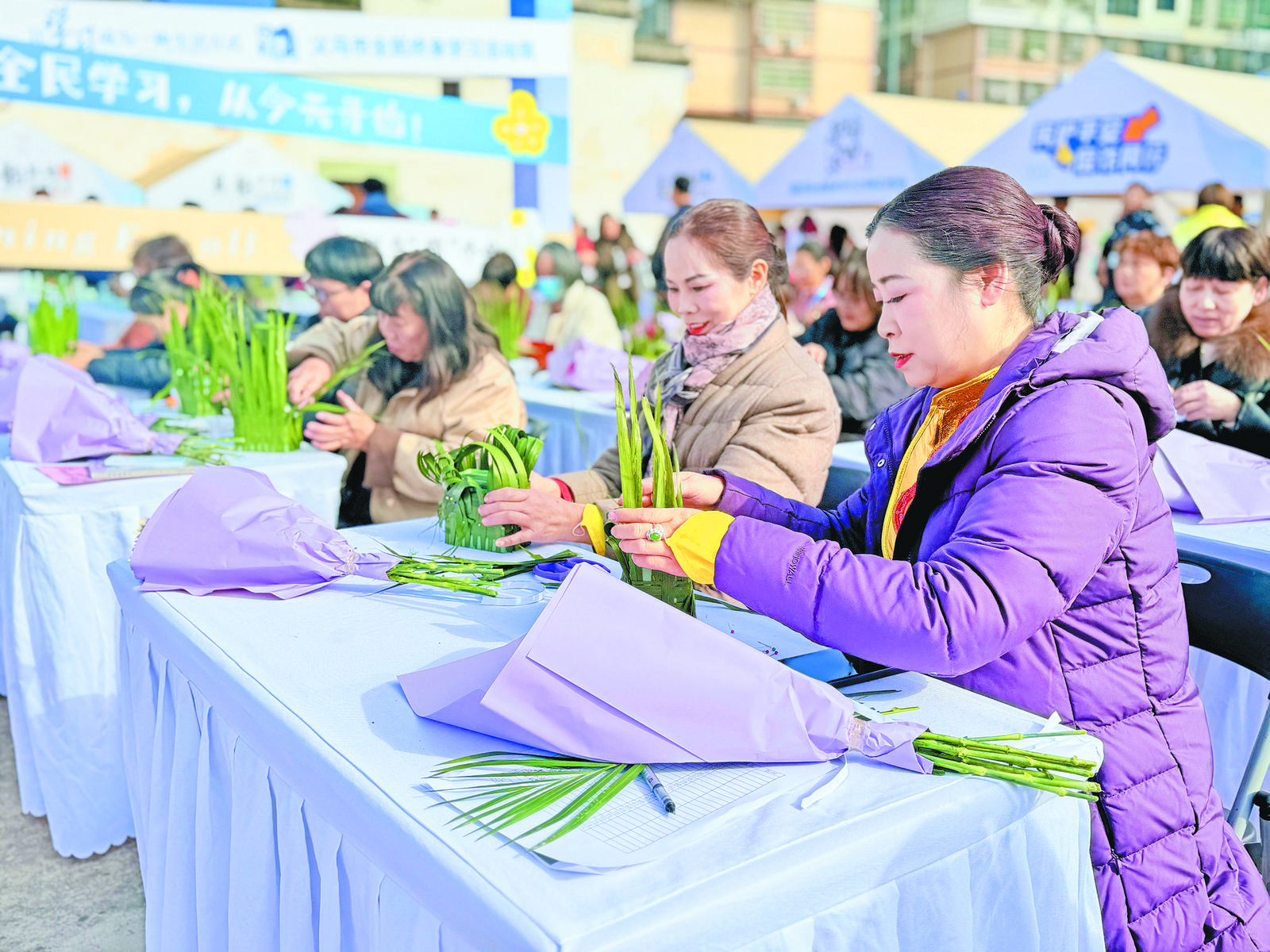 昨日,2025年義烏市全民終身學(xué)習(xí)活動周在福田街道宗宅社區(qū)文化禮堂啟動;顒佑墒薪逃峙c福田街道主辦,現(xiàn)場同時舉辦了學(xué)習(xí)成果展演和公益體驗市集,吸引眾多市民參與。 啟動儀式上,來自各年齡段的市民帶來了精彩節(jié)目;顒蝇F(xiàn)場表彰了黃玲、成斌等9位“百姓學(xué)習(xí)之星”和5個優(yōu)秀“終身學(xué)習(xí)品牌”。 義烏作為全國社區(qū)教育實驗區(qū),目前建有各類老年學(xué)堂27所、社區(qū)學(xué)習(xí)點超200個,年均參與學(xué)習(xí)達43萬人次。赤岸鎮(zhèn)“丹溪夜!钡绕放祈椖窟入選了長三角地區(qū)學(xué)習(xí)型鄉(xiāng)村建設(shè)案例。 場外的公益市集同樣熱鬧。23個攤位提供了反詐宣傳、消防普及、義診服務(wù)及插花、點茶、非遺手工等體驗項目。許多市民穿梭于各攤位之間,感受“時時能學(xué)、處處可學(xué)”的氛圍。據(jù)悉,活動周期間,義烏各鎮(zhèn)街還將陸續(xù)開展系列學(xué)習(xí)活動,持續(xù)推動學(xué)習(xí)型社會建設(shè)。 |