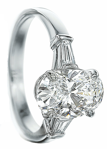 推薦理由:一種戒托,多形鉆石選擇。 Bulgari Griffe系列 切割:橢圓形切割 設(shè)計(jì)亮點(diǎn):鉑金戒指,該系列首飾所用的鉆石有各種切割方式與形狀供顧客挑選,鉆石切割形狀包括:圓形、八角形、橢圓形、心形、梨形、方形、欖尖形及公主形。中央鑲嵌橢圓形切割鉆石(1克拉起),兩側(cè)鑲嵌鉆石。 |