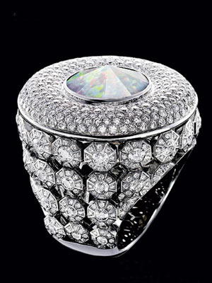 Piaget 18K 白金鑲嵌鉆石及貴果凍歐泊戒指