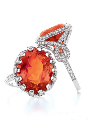 Tiffany & Co. 鉑金鑲橢圓形鉆石花瓣及橙色火歐泊戒指