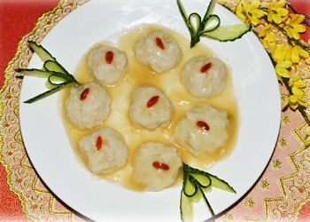 主料:山藥 調料:鹽、白胡椒粉、白糖(少許)、淀粉、面粉、高湯、調料油各適量。 做法: 先將山藥洗凈放在蒸鍋中大火蒸20分鐘至熟,然后剝去山藥皮,放在案板上用刀背將其剁成泥狀,放在盆中加入少許鹽,胡椒粉、白糖、淀粉、面粉,用筷子攪勻后做成丸子狀,在每個丸子上放一粒枸杞,上蒸鍋蒸10分鐘。另起鍋加入高湯、鹽,用水淀粉勾芡淋入調料油,將汁澆在山藥丸子上即好。 特點:此菜色似芙蓉潔白,軟爛鮮香,滑嫩。 營養(yǎng)與健康: 山藥中含有皂甙、黏液質,有潤滑、滋潤的作用,故可益肺氣,養(yǎng)肺陰,治療肺虛痰嗽久咳之癥;還有降低血糖的作用,是糖尿病人的食療佳品;能有效阻止血脂在血管壁的沉淀,能預防心血管疾病。取得益志安神、延年益壽的功效。 |
