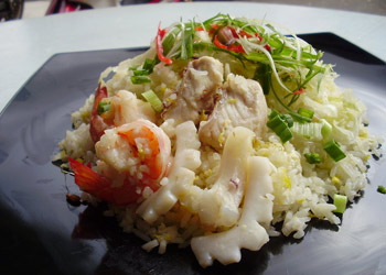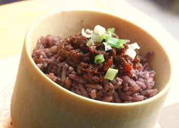 原料: 橄欖油1湯匙,洋蔥1個,切丁,西洋芹2根,切片,青或紅色甜椒1個,去籽,切絲,大蒜2瓣,拍碎,生姜末1茶匙,紅辣椒粉1/2茶匙,中等辣度的辣椒粉1茶匙,長粒米215克,熱蔬菜湯或低脂低鈉雞湯480毫升,西紅柿丁1罐,荷蘭芹3湯匙,切碎,大生蝦225克,去殼,去腸,去皮鮭魚排225克,切丁,鹽和胡椒少許 做法: 1.鍋置中火上,下油加熱。放入洋蔥,炒3分鐘。加入西洋芹、甜椒、大蒜、生姜、紅辣椒粉、辣椒粉和米,炒2分鐘。 2.倒入熱湯,攪勻,轉(zhuǎn)小火,加密封蓋,燜15分鐘。 3.一邊攪拌一邊加入西紅柿及西紅柿汁、2湯匙荷蘭芹、蝦和鮭魚。加蓋,燜3至4分鐘,至海鮮熟透,米飯將大部分湯汁吸收并變軟。 4.用鹽和胡椒調(diào)味,撒上剩余的1湯匙荷蘭芹,趁熱食用。 八寶飯