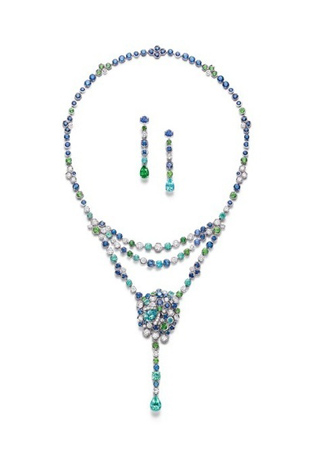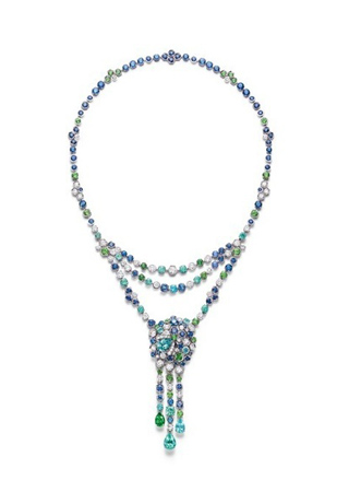 CHAUMET關(guān)于“保護(hù)蜜蜂”的承諾: 那些勤勞而生動的蜜蜂是CHAUMET品牌精髓和靈感源泉所在,CHAUMET 協(xié)同Terre d’Abeilles(蜜蜂園地)協(xié)會展開保護(hù)蜜蜂的行動。對生態(tài)保護(hù)的承諾和精湛的專業(yè)技術(shù)融合成為譜寫珠寶的同一種語言,一種聆聽感情世界的語言,向世人傳達(dá)了情感珠寶的價值。 另一能工巧匠則用同樣的技術(shù)把項鏈變?yōu)榱硕鷫。六邊形,圓形和梨形的多樣性反應(yīng)在色彩的細(xì)微漸變中:從藍(lán)色的帕拉依巴碧璽,藍(lán)寶石到翡翠綠的分沙佛來翠榴石和鉆石。 |