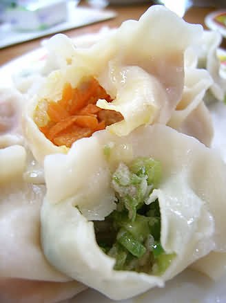 材料:豬肉餡100克,面粉100克,芹菜50克,香菇1朵,鹽適量。 做法: 1.香菇和芹菜洗凈,切成特別碎的末,與肉餡混合,加入適量鹽調(diào)味,制成餡料。 2.面粉加水和成面團(tuán),搟出餃子皮,放入餡料做成小餃子。 3.鍋中燒沸水,放入小餃子煮熟。撈出后蘸著番茄醬吃,顯得別有創(chuàng)意。 溫馨提示:把寶寶不愛吃的菜切成末,混到餡料里,做成包子、餃子、餛飩,比讓他們直接吃炒制或者是水煮的蔬菜更容易被接受。以上食物適合1歲以上的孩子。 |