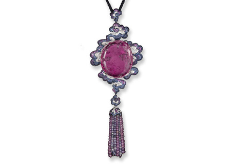 同樣色碧璽,這款帶有祥云設(shè)計(jì)的珠寶極富中國味道。