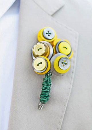 用紐扣DIY出的胸針代替了原本的胸花,金黃色無處不在。