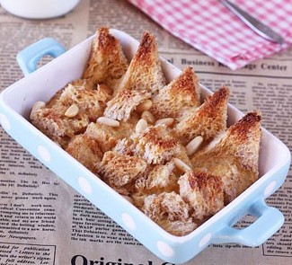 面包布丁沒有任何技術含量,超簡單的,即便是沒接觸過烹飪或者烘焙的人只要知道了制作程序也會做得很好吃。沒有烤箱也可以用蒸鍋蒸制10分鐘,不過相比較還是烤出來的口感更好~~ |